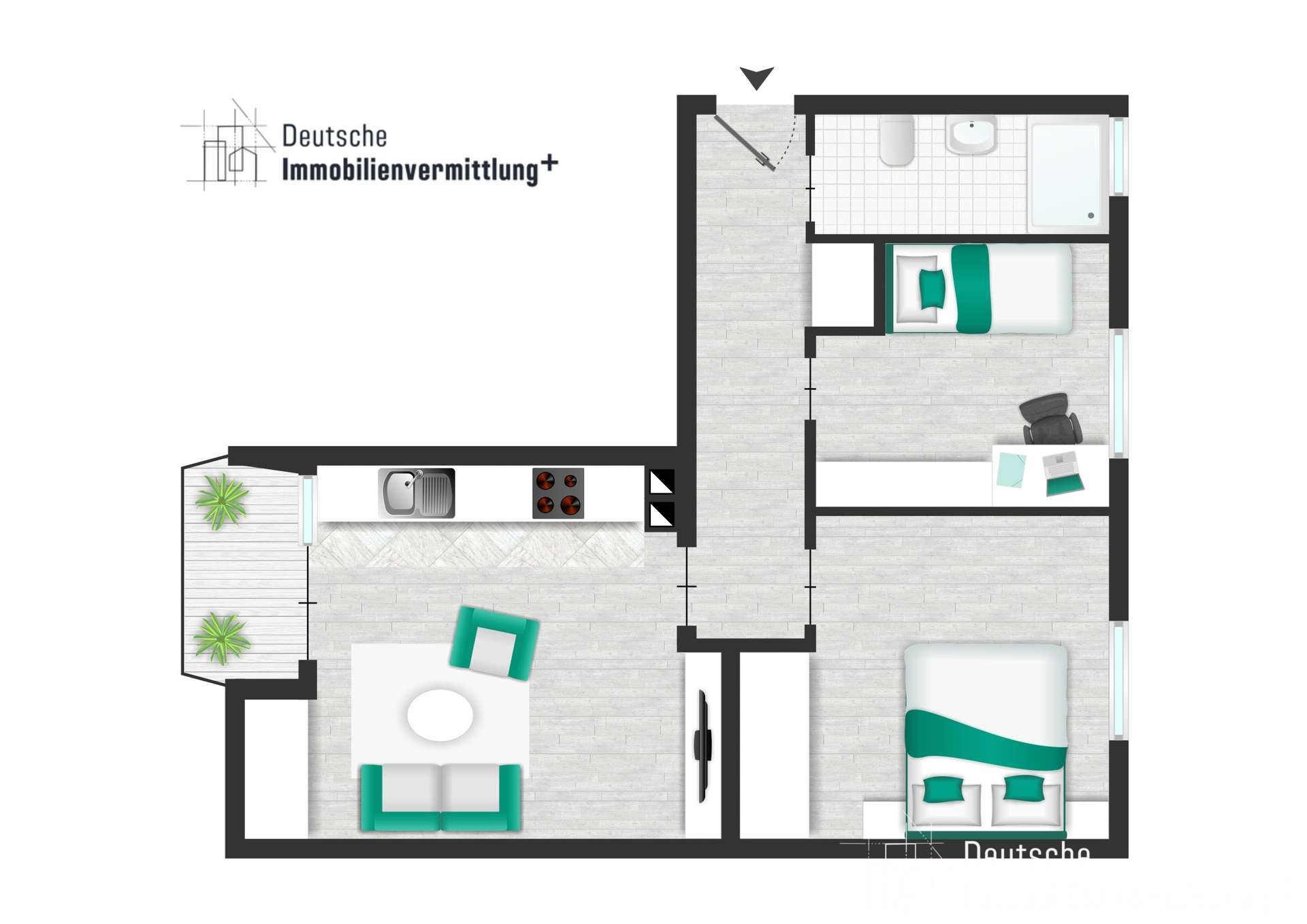 - Eine Wohnfläche von ca.54,3 m²