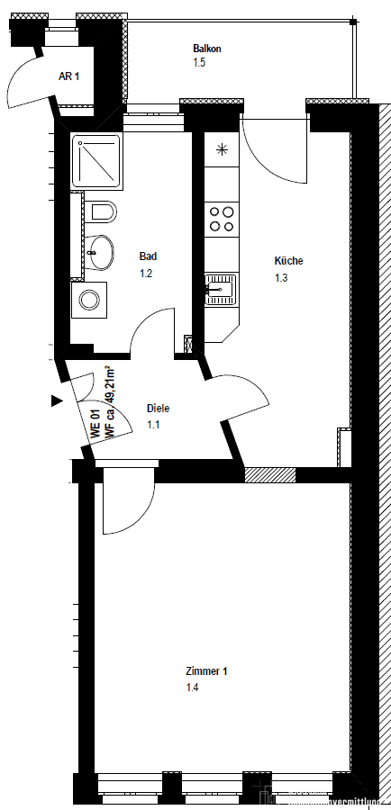 Diese schöne 1-Zimmer-Wohnung ist mit einem hochwertigen Parkettboden im Wohn- und Schlafraum ausgestattet. Das moderne Tageslichtbad verfügt über eine Dusche, einen Handtuchheizkörper, einen Waschmaschinenanschluss, einen großen Wandspiegel, sowie schicke Anthrazit-Fliesen. Die große Küche bietet Zugang zum hofseitigem Balkon und ist bereits mit einer Einbauküche ausgestattet. Deckenspots in Flur, Küche und Bad, Stuckdecken, Videosprechanlage sowie Fußbodenheizung runden die Einheit ab.