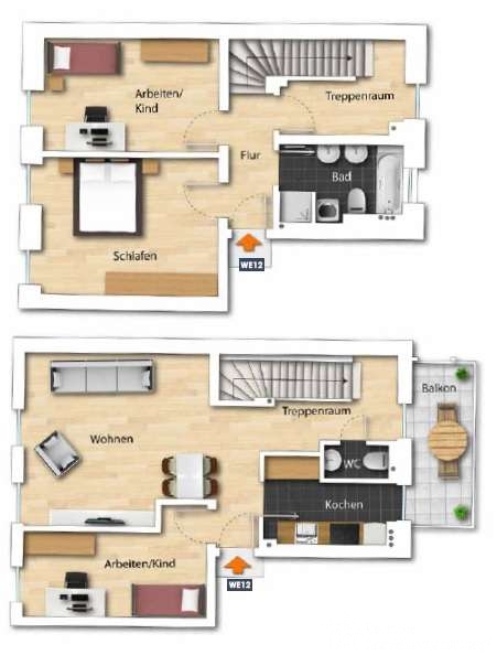 Tolle Maisonette-Wohnung mit 4 Wohn- bzw. Schlafzimmer, welche über Parkettboden verfügen.