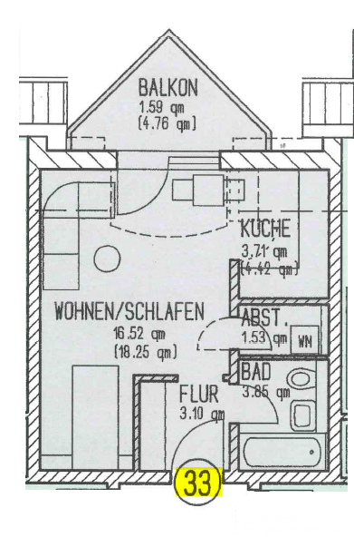 Die 1-Zimmer-Wohnung befindet sich im Dachgeschoss einer gepflegten Neubauanlage.